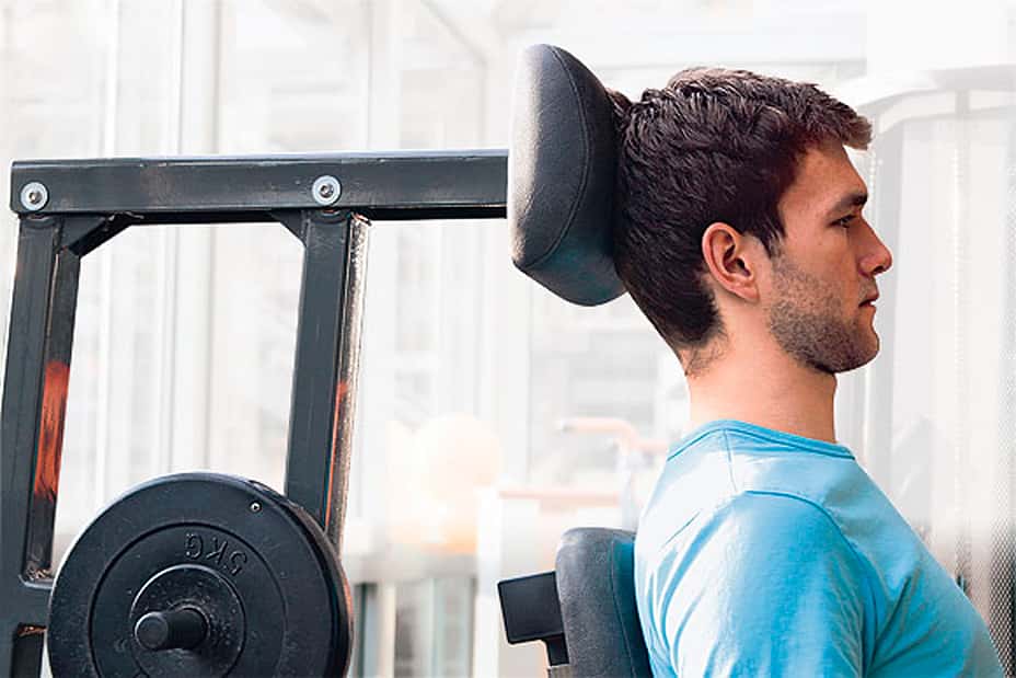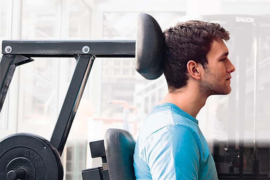 5 / 26 Koordination 3.) Die Seilzugübung auf instabilem Untergrund lässt das Nervensystem auf Hochtouren laufen und sorgt gleichzeitig für eine starke Aktivierung der für die Stabilisierung verantwortlichen Muskulatur. 6 / 26 Krafttraining 1 a) Das Training mit dem HWS-Trainer ist eine Bewegungsschulung für die Halswirbelsäule. Trainiert wird die haltungsstabilisierende Muskulatur im Hals- und Brustbereich. Das Kopfpolster muss mittig am Hinterkopf anliegen.7 / 26 Krafttraining 1 b) Der Kopf wird in einer horizontalen Bewegung vor und zurück bewegt. Die Endstellung des Kopfes ist der "lange Hals" mit leichtem Doppelkinn. Der Kopf wird nicht nach hinten gekippt, es findet keine Nickbewegung statt.