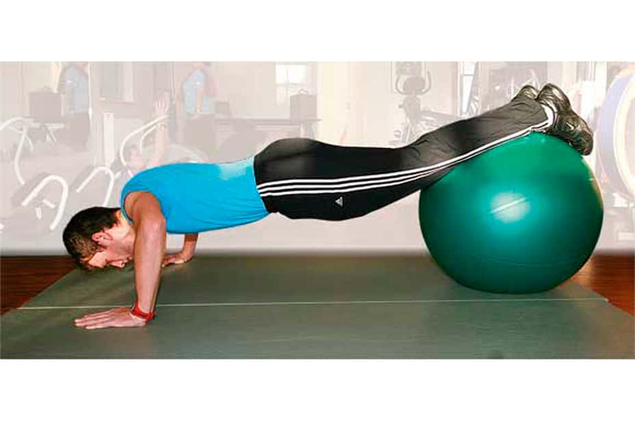 Mit fortschreitender Fitness können Übungen in den Trainingsplan eingebaut werden, die eine höhere Grundkraft und Stabilisationsfähigkeit voraussetzen. Indem wir traditionelle Kraftübungen mit einem instabilen Untergrund versehen, erhalten diese Übungen alle Vorteile des bereits erwähnten propriozeptiven Trainings. Neben der Muskulatur, die bei der jeweiligen Übung im Vordergrund steht, werden die gesamte Rumpfmuskulatur und die Koordination intensiv mittrainiert. In unseren Übungsbeispielen dienen Gymnastikball und Medizinball als instabile Unterlage.