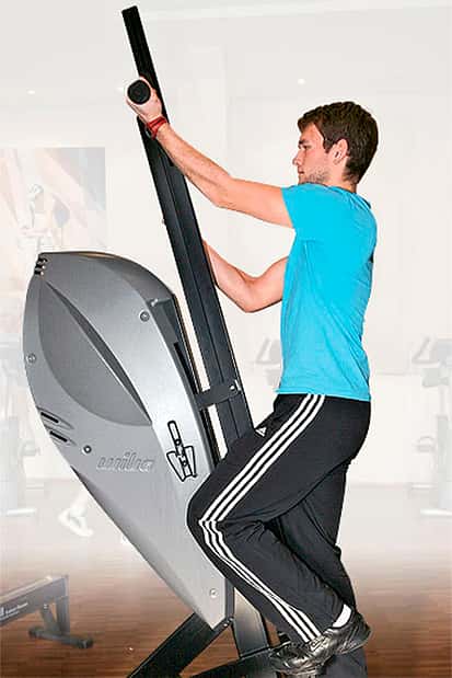 1 / 26 Ausdauer 1.) Beim Climber ist die gesamte Muskulatur im Einsatz. Der Trainierende befindet sich in aufrechter Position. Die Hände sollten am besten im Kammgriff greifen und nicht verkrampfen. 2 / 26 Ausdauer 2.) Das Handkurbelergometer (stehend oder sitzend) lockert und kräftigt den Schultergürtel. Auch bei schnellen Drehbewegungen muss der Rumpf stabil bleiben.