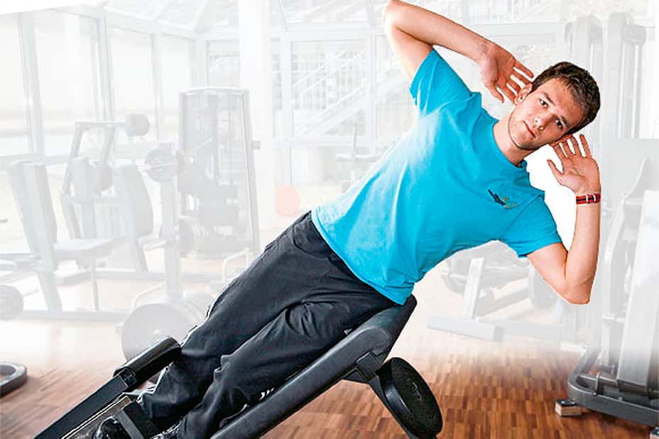 16 / 26 Krafttraining 6.) Das Rumpfseitheben ist eine wichtige Übung zur Haltungsstabilisierung und trainiert die seitliche Bauchmuskulatur sehr effektiv. Wichtig: Der Trainierende liegt exakt auf der Seite. In der Ausgangsposition bildet der Körper von den Füßen bis zum Kopfende eine Gerade. 17 / 26 Der Oberkörper wird nach oben abgewinkelt und wieder in die Gerade zurück geführt.