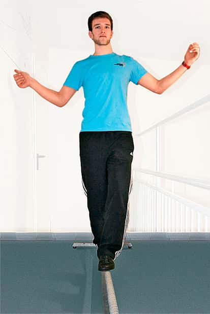 3 / 26 Koordination 1.) Beim Balancieren auf dem Seil muss jede Gewichtsverlagerung sofort ausgeglichen werden. Der Blick nach vorn wirkt Wunder. 4 / 26 Koordination 2.) Der Einbeinstand auf beweglicher Plattform ist in Kombination mit Wurfübungen eine Herausforderung für Fortgeschrittene.